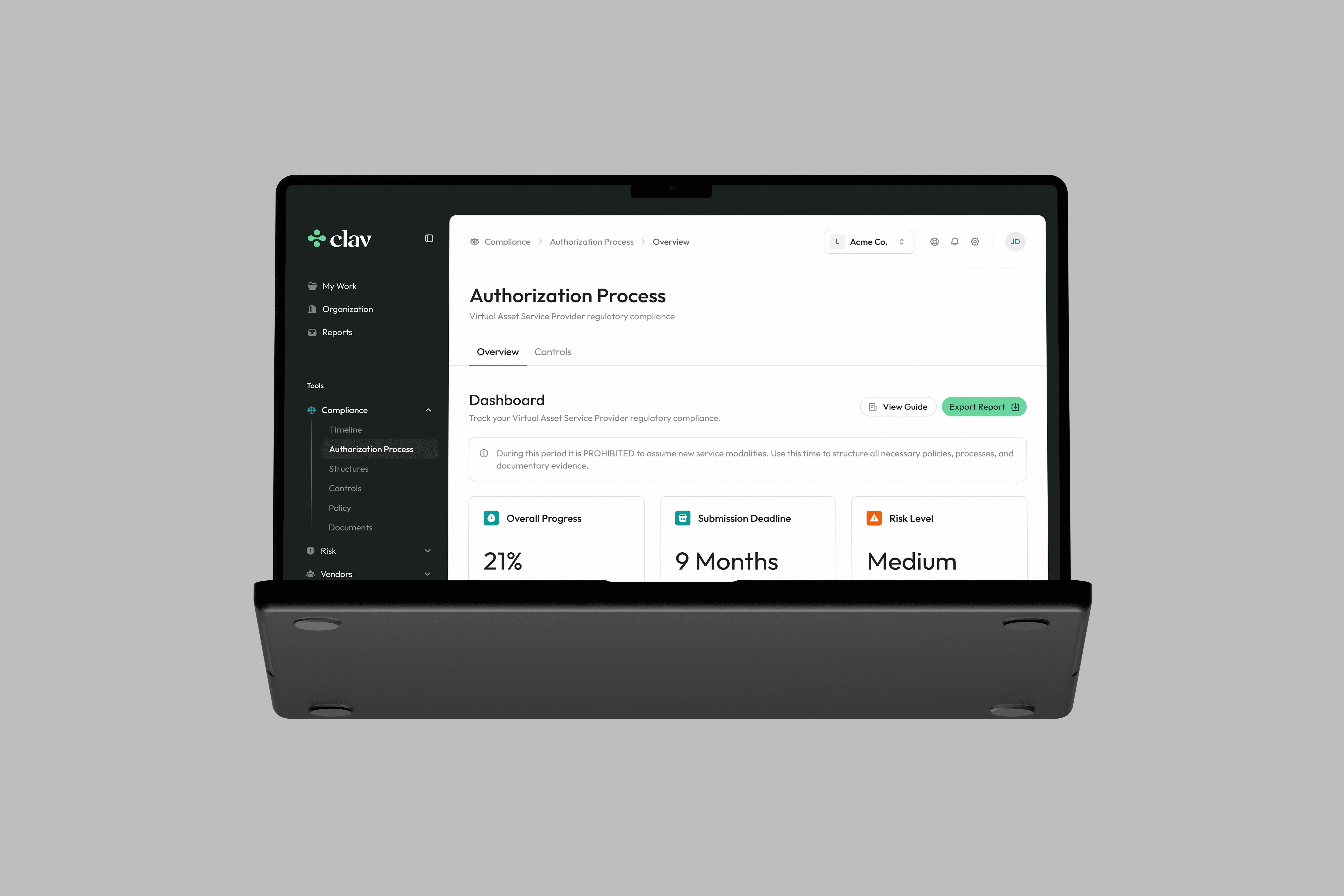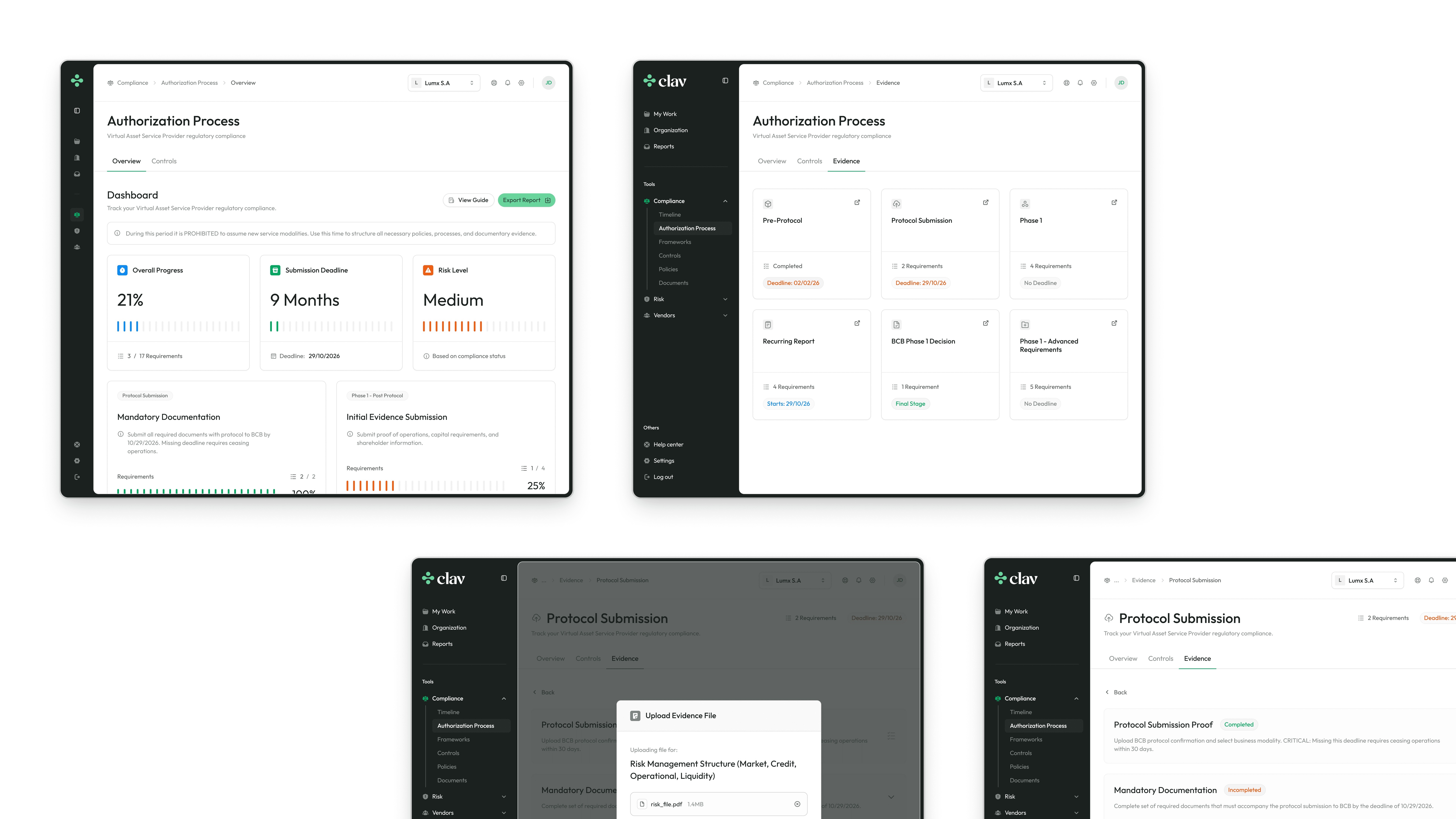Clav helps regulated businesses operate with clarity inside complex regulatory environments, turning compliance obligations into structured, auditable systems. The challenge was to translate a dense, technical domain into a visual and verbal language that feels precise yet approachable. We developed positioning, brand identity and a product-driven website that gives Clav a presence as reliable and systematic as the platform itself.