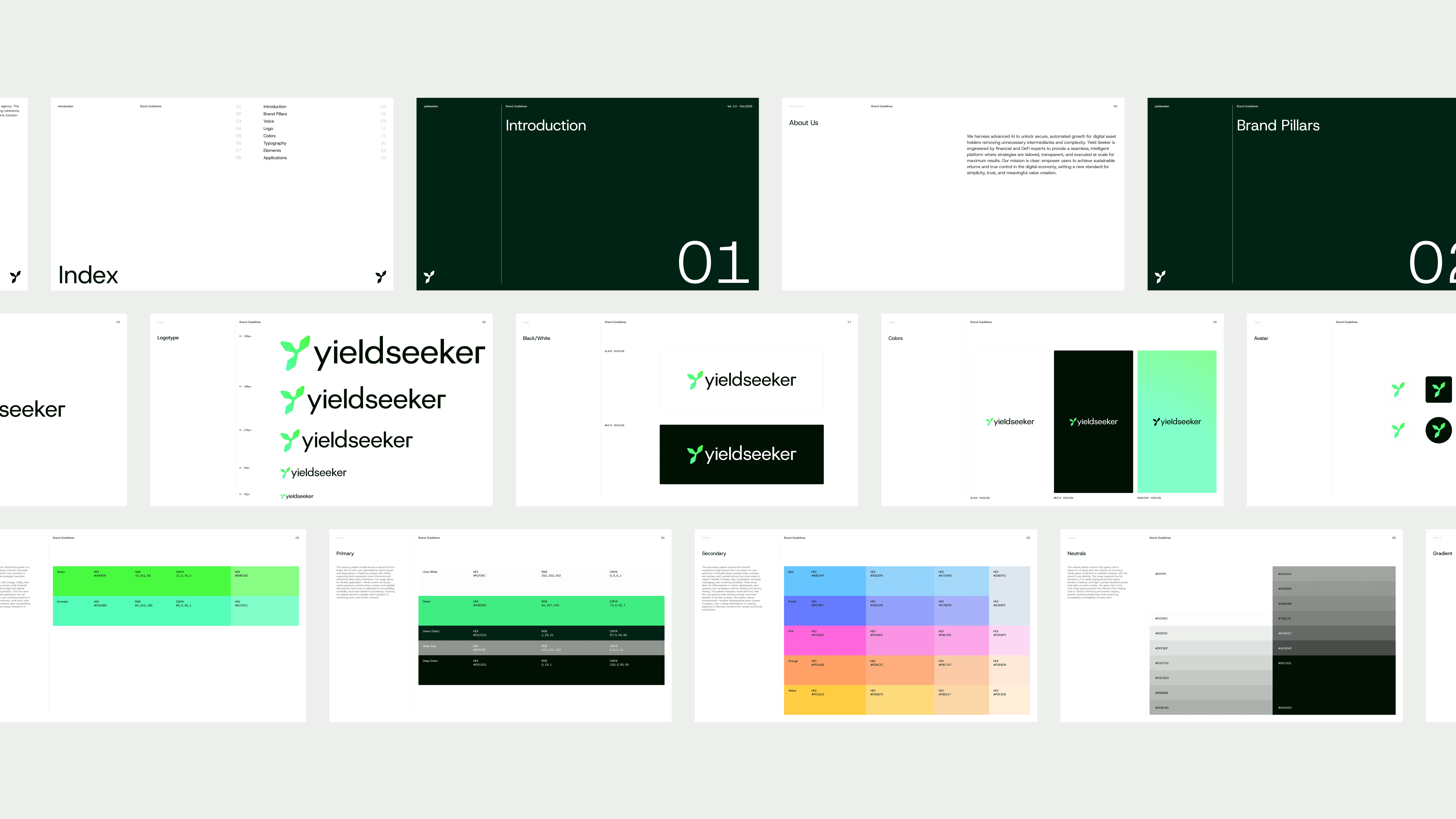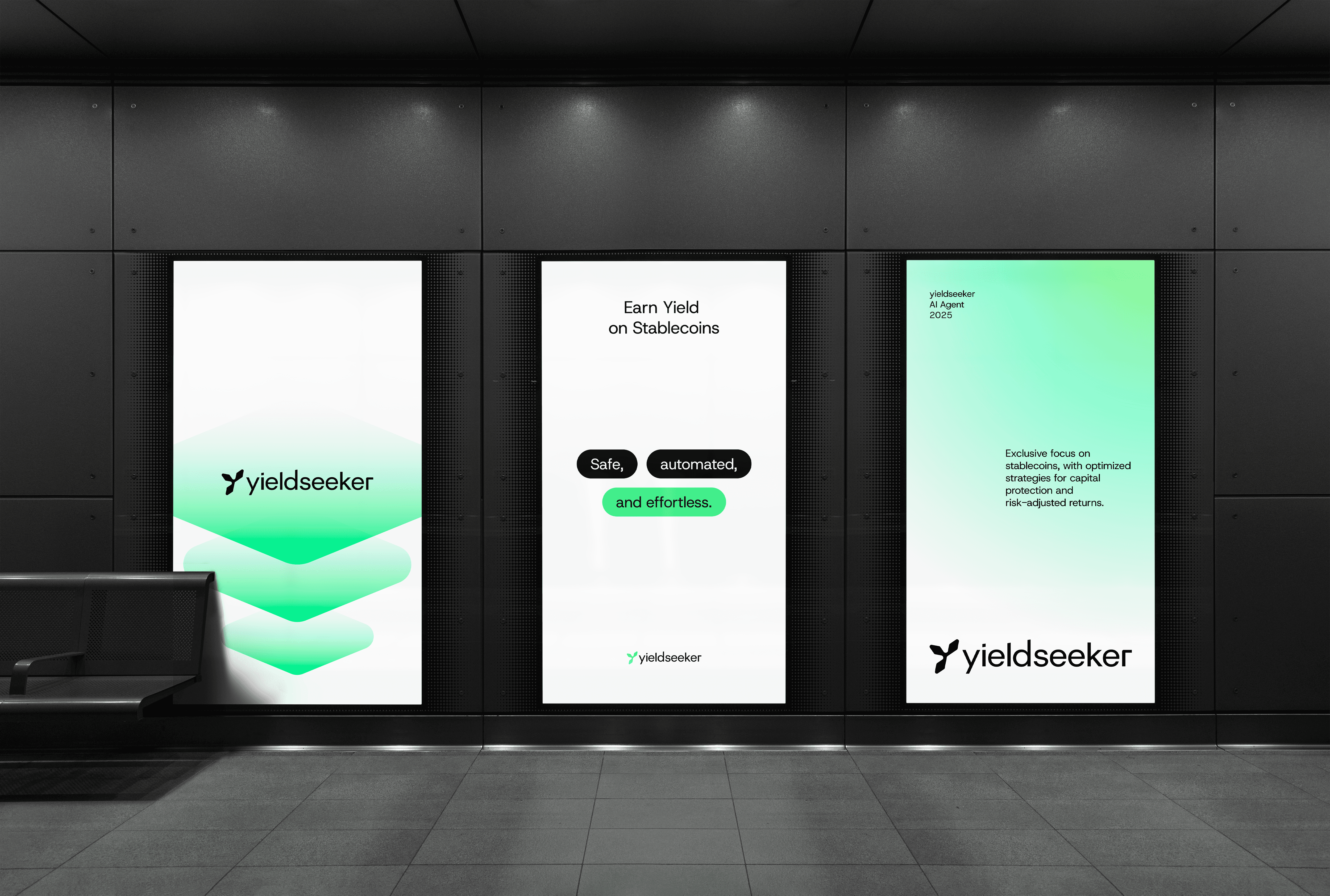 An AI-powered platform that continuously scans DeFi protocols to identify and optimize stablecoin yields in real time. We built the brand from the ground up, defining positioning, naming, visual identity and digital experience. The challenge was to translate complex financial infrastructure into a clear, credible presence built for the emerging market of automated yield strategies. From strategy to website development, we designed a cohesive system that positions Yield Seeker as a new generation platform at the intersection of AI, DeFi and passive digital asset management.